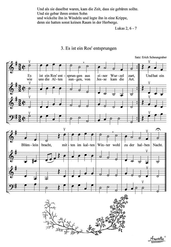 In das 2. Kapitel des Lukasevangeliums sind an den passenden Stellen 12 bekannte Weihnachtslieder eingepasst, die Erich Scheungraber für vierstimmiges Kinderstreichorchester gesetzt hat.